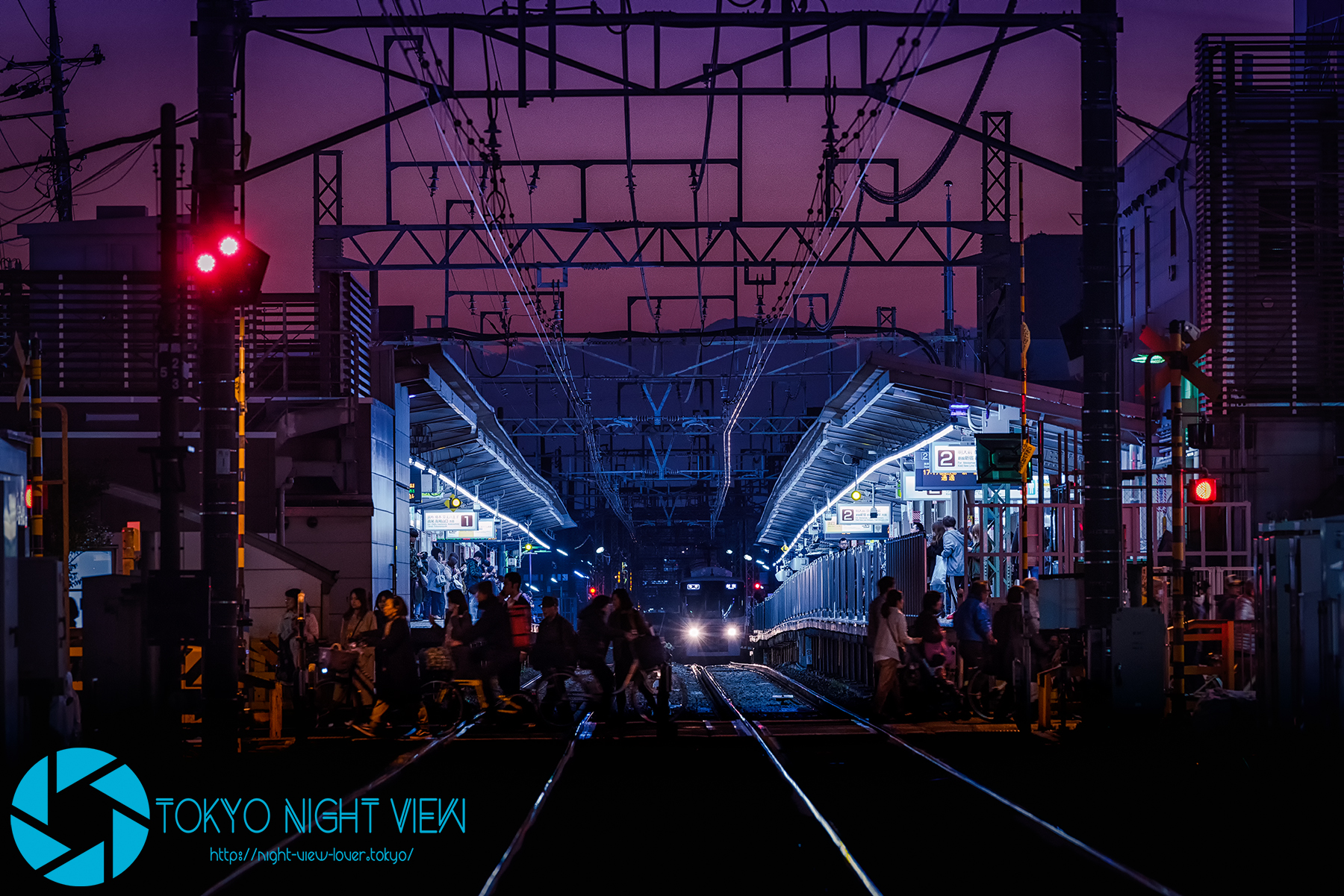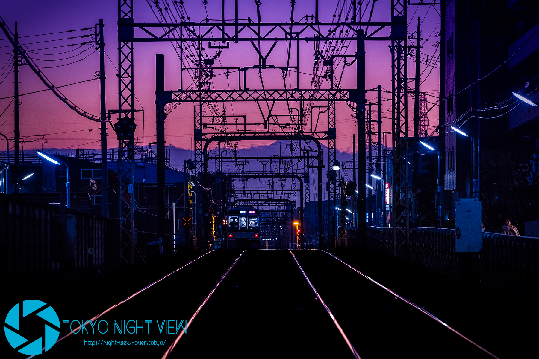 藍色に染まりゆく空の先に小さくもどっしりと構える富士山。忙しなく行き交う京王線の電車と僅かな時間だけ開く踏切を慌ただしく駆ける人々。静と動、ふたつの相容れない景色もファインダー越しにまとめて収めてしまえばフォトジェニックな景色。
