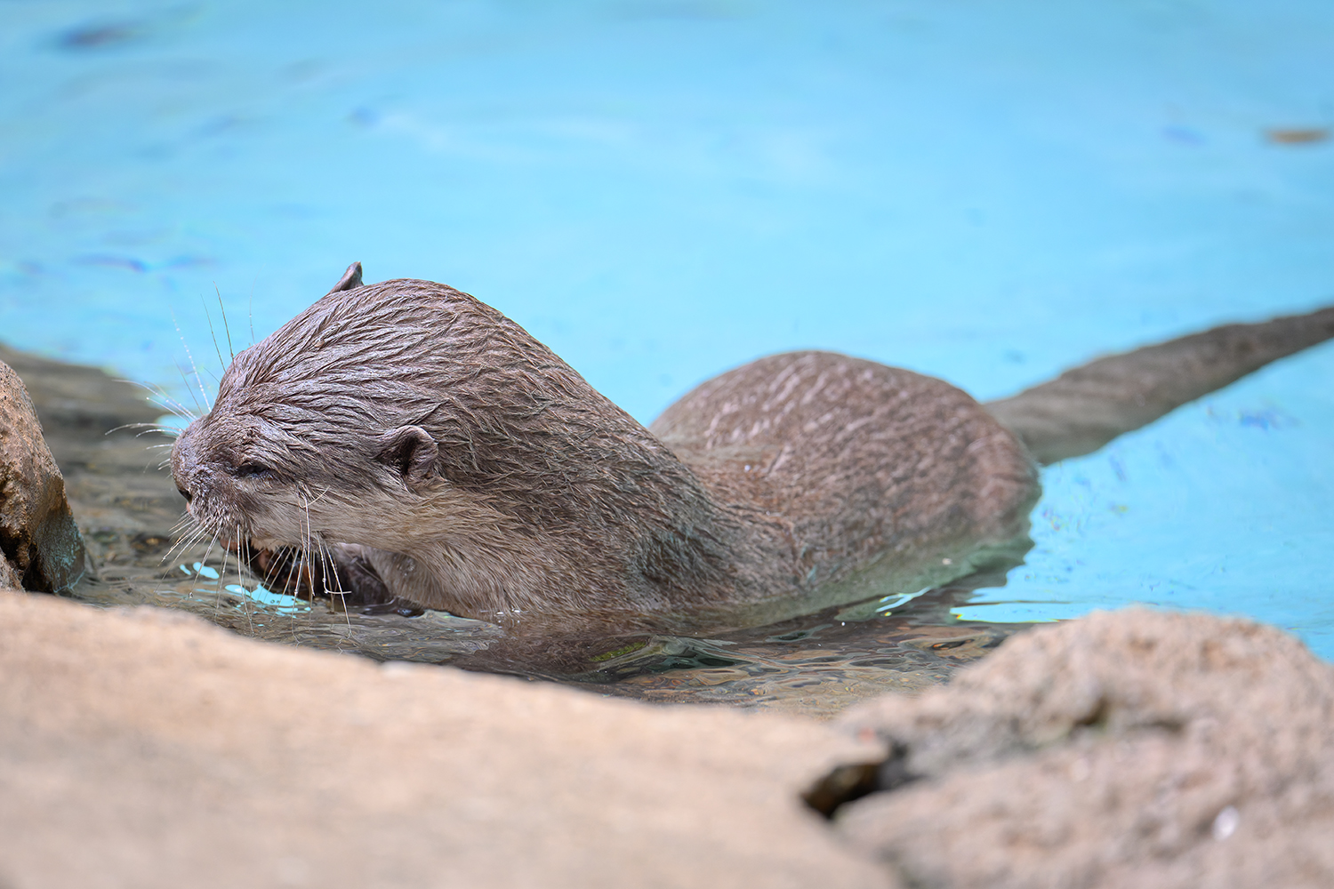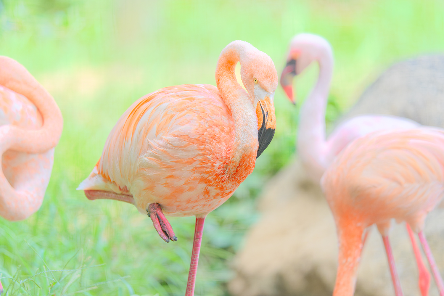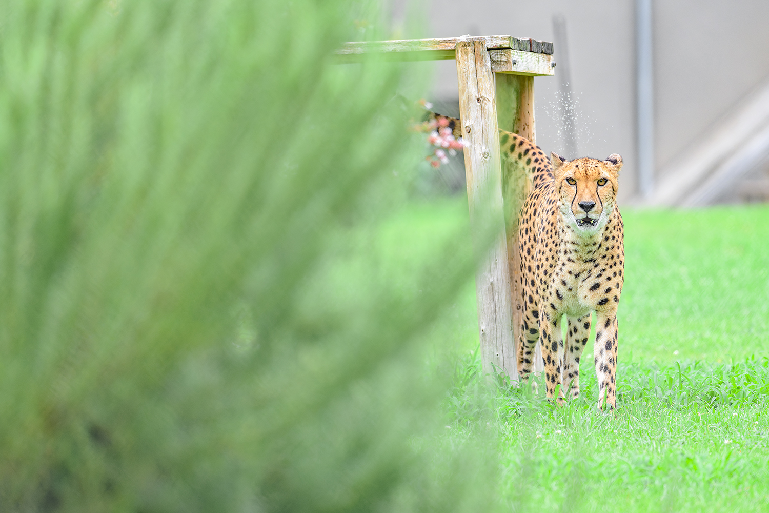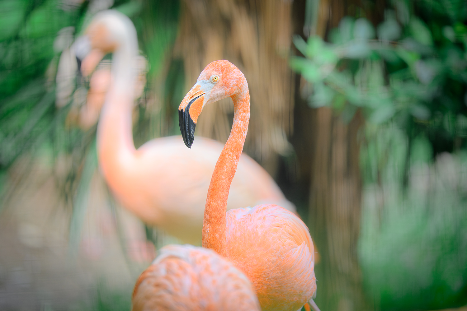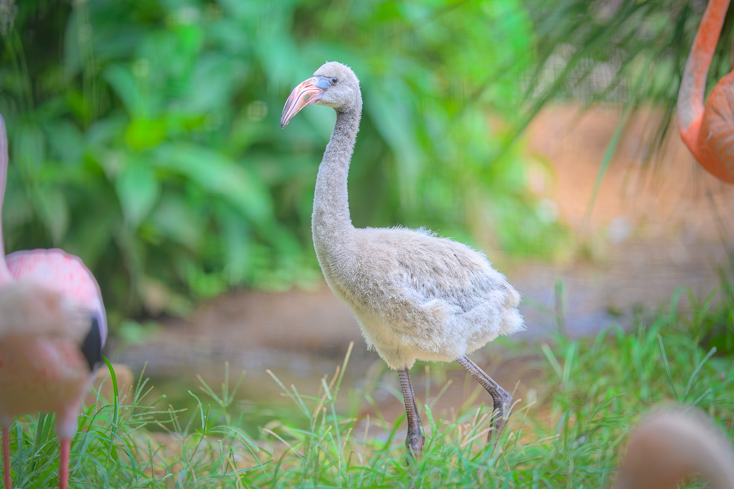 撮影する場合には、草原ゾーンや小動物、モンキーゾーンの一部などはフェンスではなく素通しなので、フェンスの前ボケを気にする必要はありませんが、肉食獣や鳥類ゾーンなどではフェンス越しになるので望遠レンズを開放で撮る必要があります。なかでもフラミンゴや肉食獣は動物たちがフェンス直前まで近寄れる代わりに、人間が生垣越しで見学するので、かなりフェンスのボケが煩く綺麗に撮るのは至難の業です。
