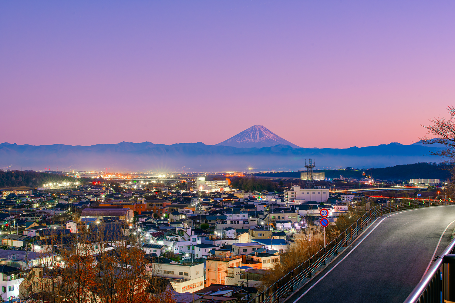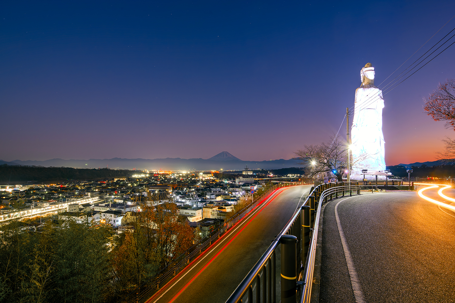 韮崎平和観音から夕暮れの富士山を撮る