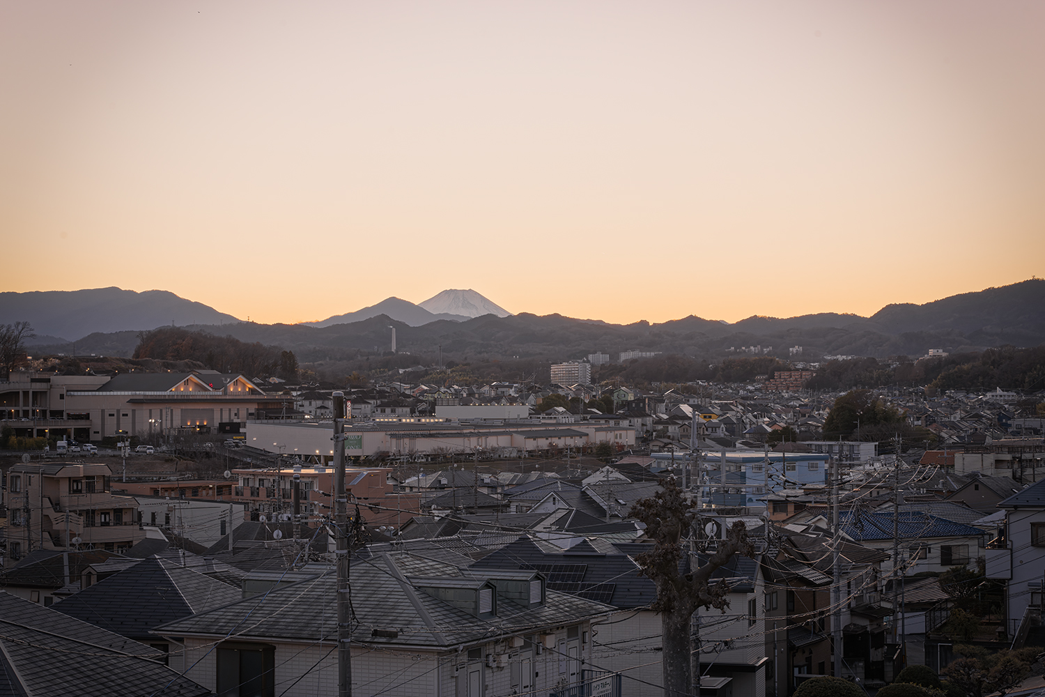 ラッシュ時には日本有数の運転本数を誇る京王線ですが、関東平野外縁部にも近い八王子郊外まで来ると長閑な郊外の風景を見せます。駅から見える景色も戸建ての住宅が建ち並ぶ住宅地にも山々が迫り、丹沢の稜線の奥に姿を見せる富士山も一際大きく感じます。