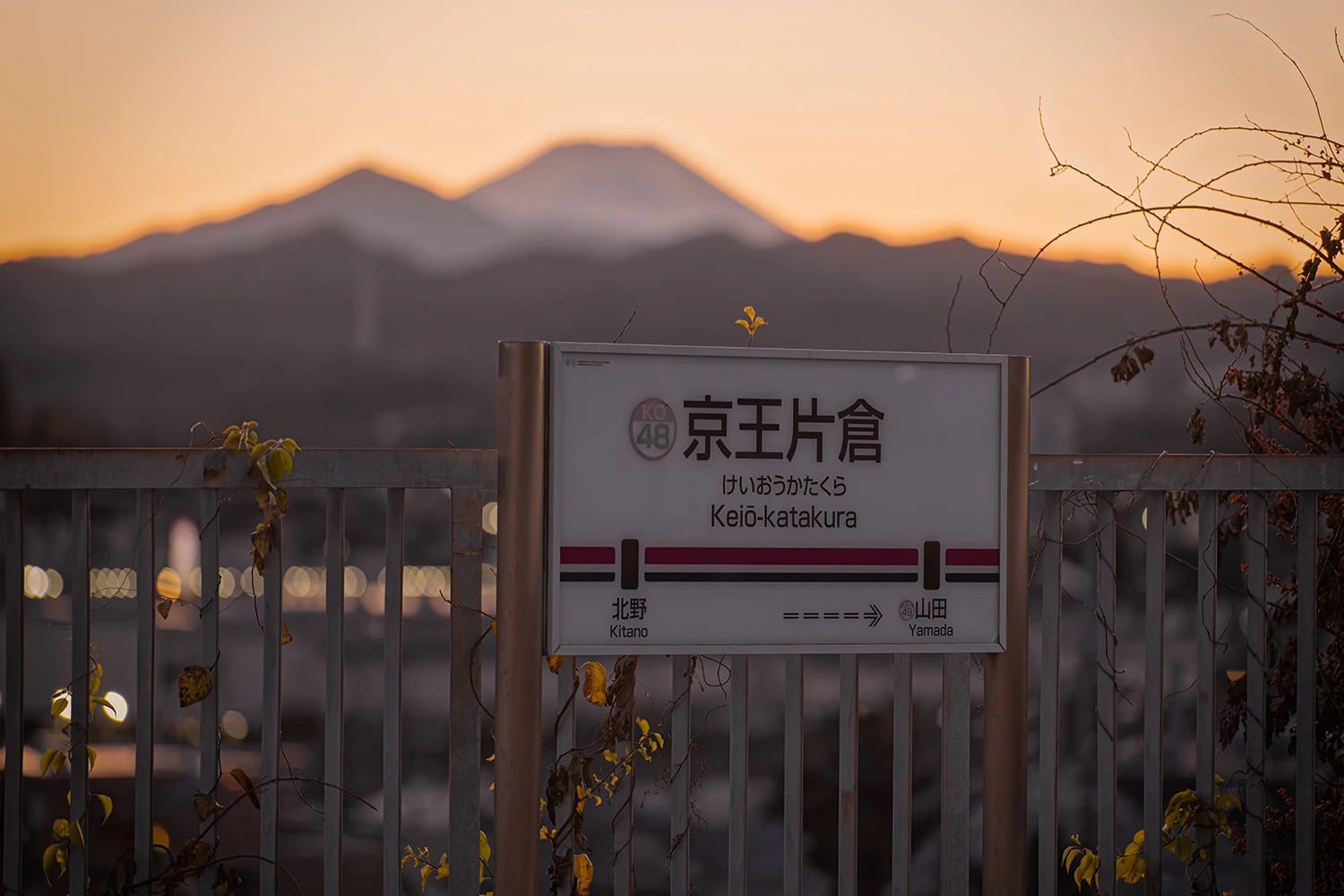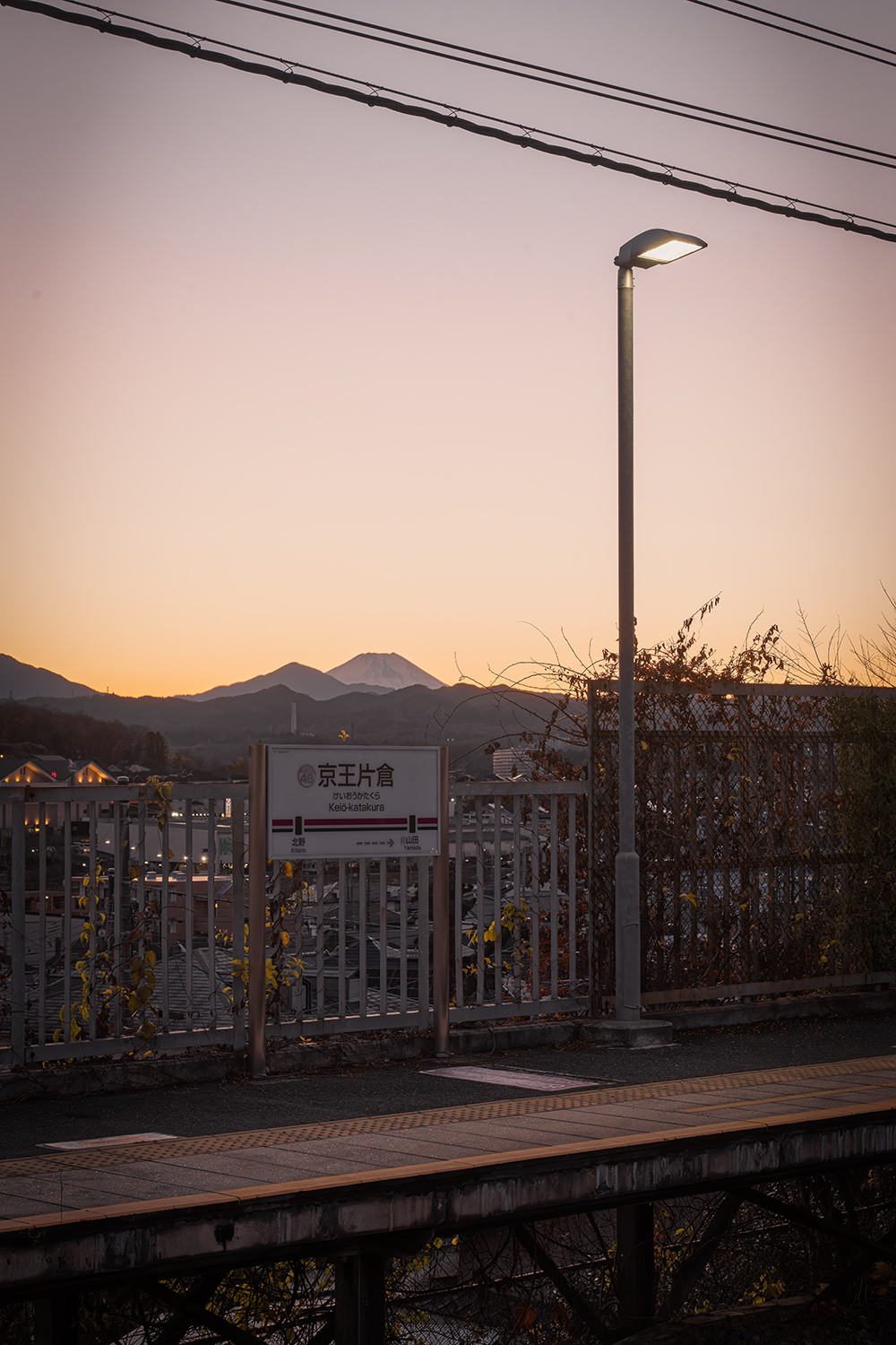 新宿駅から富士山へと延びるように走る京王線にあって、京王線沿線から富士山を眺めること出来る場所は数多くありますが、駅構内から富士山を眺めることのできる駅は少なく、その一つである京王片倉駅。駅構内の連絡エレベーターや上下線ホームの新宿方面からは晴れた日には富士山や東京外縁部の山脈の稜線などを眺めることができます。
